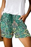 QUEEN PLUS Women Juniors Summer Casual Shorts Fashion Print Comfy Pocketed Drawstring Elastic Waist Pants Teal Paisley XL