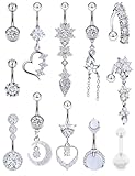 Vsnnsns 14G Dangle Belly Button Ring Piercing Jewelry 316L Stainless Surgical Steel Heart Flower CZ Reverse Navel Rings Dangling Belly Button Ring Piercing Jewelry for Women 14 Gauge Silver