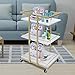 3 Tier All-Metal Rolling Cart - Household Storage Rack Make-up Cosmetic Storage Trolley w/Lockable Wheel Handle, Makeup Storage Organizer Craft Trolley for Kitchen, Bathroom, Office