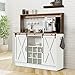 4ever2buy Farmhouse Coffee Bar Cabinet with Hutch, 47 Inch Buffet Cabinet with Storage, White Wine Bar with 9 Wine Racks and 6 Hooks, Coffee Bar Table with Adjustable Shelves for Living Dining Room