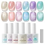 GELLAKTIK 5-in-1 Cat Eye Gel Polish Kit, 6PCS-7.5ml No Base/Top Coat Needed, All-in-One Formula, Beginner-Friendly Magnetic Nail Art Set with Magnet Sticks, Fast Curing for Home DIY Manicure