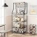 - Maximize kitchen storage with 5 spacious tiers: 2 large countertops, a top shelf, 2 wire baskets, and 8 hooks for appliances, cookware, spices, and more.