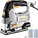 6.7-Amp Jig Saw Corded: Electric Jigsaw Tool Power Jig Saws for Wood Cutter with 6 Variable Speed Up to 3000 SPM, 4 Orbital Settings, LED Light & ±45° Bevel Cutting, Tool-Free Blade Change