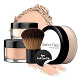 4pc Full Size Kit (Pink Bisque) Mineral Makeup Matte Translucent Loose Foundation + Kabuki Brush + Concealer + Finishing Setting Powder + Bare Face Full Coverage SPF 30 All Skin Types Waterproof
