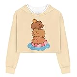 Cozeyat Cute Capybaras Kids Crop Tops Girls Long Sleeve Fashion Hoodies Pullover Sweatshirts Size 9-10 Cute Graphic Clothes for School Daily Outdoor Sports