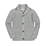 Hope & Henry Boys' Organic Long Sleeve Shawl Collar Sweater, Small, Light Gray Heather with Textured Collar