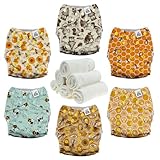 Mama Koala 3.0 Pocket Cloth Diapers for Babies with AWJ Lining, 6 Pack with 6 4-Layer Natural Cloth Diaper Inserts - Reusable and Washable Pocket Diapers(Hardworking Bees)