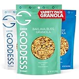 Greek Goddess Gourmet Granola Variety Pack – Baklava Bliss, Harvest, & Maple Oat with Nuts, Honey, Maple Syrup, Coconut & Olive Oil – Greek-Inspired, Gluten Free Granola, 10oz Bags (3-Pack Assortment)