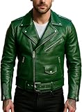 Prime-Fashion Mens Classic Motorcycle Rider Green Biker Leather Jacket, XX-Large