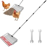 SlowTon Chicken Poop Scooper 15" Wide - Stainless Steel Chicken Coop Scoop Heavy Duty with 40 to 77" Long Handle for No Bending Work, Chicken Coop Litter Cleaning Tool Sand Sifting Shovel