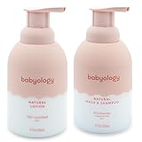 Babyology - 100% Edible Ingredients - All Natural Baby Wash and Shampoo Rose + Organic Baby Lotion SET - 12 FL OZ Good for Sensitive Skin or Eczema - Non Toxic - Fragrance Free (Set of 2)