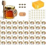 DnayDkiy Honey Jar, Glass Honey Pot 1.5oz, 40 Pack Mini Honey Jars with Dipper, Bee Charm, Jutes, Thank-you Card, Gold Gift Bags and Stickers, Pefect for Baby Shower Favors Wedding Favors
