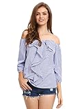 Milumia Women's Tie-Bow Vertical Stripe Ruffle Off The Shoulder Blouse Top Blue M