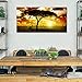 African Tree Sunset Landscape Bedroom Wall Art Large Artwork Panoramic Natural Animals Picture for Living Room Wall Decor Framed Canvas Print Kitchen Home Décor Direct Hang 24x48inch