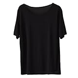 AUPancc Modal Pajamas Women's Pajama Tops - Sleep Shirts for Women, Pure Color Round Neck(5 Colors) Black