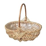 VICASKY Large Handheld Wicker Flower Basket Portable Flower Arrangement Basket Indoor Decorative Storage with All Match Style