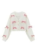 SHENHE Girl's Bow Button Down Knitted Cardigan V Neck Loose Cute Crop Sweater Outwear White 11 Years