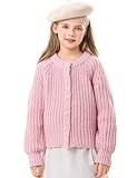 Yimoon Girls Cardigan Button Down Chunky Knit Sweaters Cute Long Sleeve Open Front Cardigan Fall Outerwear(Pink-11Y)