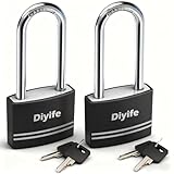 Diyife Padlock with Key, [2 Pack] [Waterproof] Lock with Key, Long Shackle Padlocks for Outdoor Anti-Rust, Small Covered Aluminum Padlock with 4 Alike Keys for Gym Locker, Fence, Shed