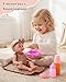 - 【Baby Doll Care Set】: The Accessories set also contains a feeding set, including bottles, tableware, cushions, etc., to simulate real feeding scenes. Children can develop a sense of responsibility and caring skills through feeding games with dolls.
