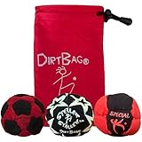 DIRTBAG Medley Footbag 3-Pack with Pouch, 100% Handmade, Premium Quality, Bright Vivid Colors, Signature Carry Bag - Red/Black