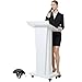 BERPET Podium Stand with 4 Locking Wheels, Lecterns & Podiums for Church School Office Conference Home, Heavy Duty Metal, Large Storage Area, Slant Desktop, 50.4" H, White