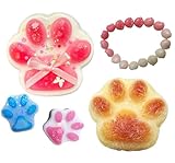 5PCS Handmade Taba Squishy Cat Paw Toys –Soft Jelly Kitty Paw Squeeze Toys, Cute Kawaii Fufu Squishies, Sticky Fur Ball Stress Relief Fidget Toys for All Ages (Pink Sticky+Yellow Fur)