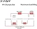 Great for fitness enthusiasts who want to utilize a standard Olympic bar. Measures length 48 inch ; between the bar sleeves length is 33.6 inch; sleeve length 6.4 inch; 8.1 inch knurling on either end; 2-inch sleeve diameter; can support a weight capacity of up to 200 lbs.