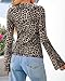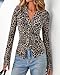 BTFBM Button Down Shirts for Women 2026 Spring Boho Tops V Neck Long Sleeve Blouses Ruched Mesh Fitted Fall Fashion(Leopard, Medium)