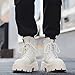 BWSEOBG Men's Platform Chunky Heel Combat Boots Lace - Up High - Top Side Zipper Ankle Boots Fashion Casual Booties for Streetwear Outdoor Hiking (White,11)