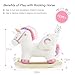 - Unique Appearance:the unicorn baby rocker structure and animal appearance all originally designed by our French team,the pink and white color scheme with gradient horse mane allows babies to deepen their perception and understanding of colors while playing