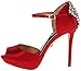 Make a serious splash with these saucy sandals! Adjustable buckle closure over instep. Sleek satin upper with sparkling crystals at heel cup. Man-made lining. Lightly cushioned man-made footbed. Wrapped platform and heel. Leather sole. Imported. Measurements: Heel Height: 5 in Weight: 11 oz Platform Height: 1 in Product measurements were taken using size 9, width M. Please note that measurements may vary by size.