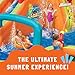 - The Whole Set: This splash park features a waterslide, a climbing wall, inflatable rings, a water cannon, and overhead sprinklers. It comes with anchor stakes, an air blower, and a storage bag
