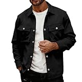 Mens Cargo Shirt Jacket Work Long Sleeve Shirts Tactical Button Down Workwear Twill Hiking Fishing Tops with Pocket Black