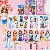 Magnetic Dress Up Paper Doll Pretend Play Game Toys,Dollhouse Magnet People Clothes Puzzles Development for 3+ Year Old Girls Toddler,Preschool Learning Created Imagine Birthday Gift (A Set)