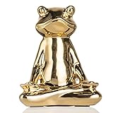 Gold Frog Statue Ceramic Yoga Animal Figurine Zen Frog Statues for Home Table Spiritual Room Decortion, A
