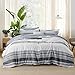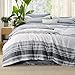 Bedsure Queen Comforter Set 7 Pieces, Dark Grey Striped Bedding Set for All Seasons, Reversible, Cationic Dyeing Bed in a Bag with Comforter, Sheets, Pillowcases & Shams