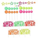 Cabilock 40pcs Neon Glow Cake Topper Set Flexible Birthday Decorations with Star and Ball Designs for All Ages Celebrations Easy Cleanup for Photos