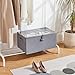 - Utilizing cationic fabric, it exhibits outstanding dust resistance and moisture-proof properties. With three fixed handles and reinforced cardboard side panels and base, this shoe storage box ensures that it maintains its shape even under pulling or other pressures.