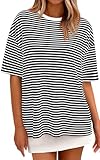 PRETTYGARDEN Short Sleeve Striped Basic Tees for Women 2026 Trendy Casual Summer Maternity Clothes Soft Oversized Tshirts (Black Striped, X-Large)