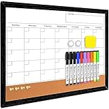 ABERLLS Monthly Calendar Dry Erase Board for Wall, 17''x13'' Whiteboard with Black Wood Framed, Magnetic White Boards, 2in1 White Board Cork Board Combo