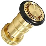 QWORK Brass Fire Hose Nozzle, Adjustable Spray Jet & Fog, 1.5" NPT/NPSH, for Firefighter, Garden, and Industrial Use