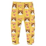 Yuiboo Cotton Baby Overalls Baby Pajamas Bottoms with Feet Loose Pants with Footies for Infant Boys Girls Cat Heart Yellow
