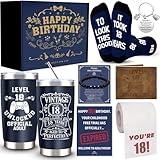 8 Pcs Happy 18th Birthday Gifts for Boys, 18 Year Old Boy Birthday Gifts Ideas with 20 Oz Tumbler, Funny Socks, Toilet Paper, Bracelet, Teen Boys Wallet, Keychain for Son, Nephew, Grandson, Brother