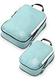 Compression Packing Cubes 2 Piece Set for Travel - Lightweight, Durable Clothes Organizer for Carry-On Luggage and Backpacks by TRIPPED Travel Gear ((Dusty Teal and White)