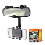 Armor All Phone Mount for Car, Rear View Mirror Phone Holder, 360° Rotatable, Adjustable Telescopic Arm, Car Phone Holder for iPhone, Samsung, & All Cell Phones Between 2.5” in – 3.7” in. Wide