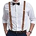 Buyless Fashion Leather End 2 Pack Suspenders for Men - 48" Elastic Adjustable Straps 1" - Y Back with Metal Hooks - 5139-2-Camel