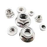 SFCHEN 2pcs M4-M12 304 Stainless Steel Prevailing Torque Type All Metal Insert Hexagon Lock Nut with Flange Hex Self Locking GB6187(M6 Serrated Bottom)