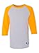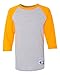 5.2 oz., 100% cotton. Contrast color raglan sleeves. Three-quarter sleeves. Locker patch on front left hip. Double-needle sleeve and bottom hems. C Logo on left Sleeve. .