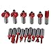 CNBTR 1/2" Red Shank Carbide Steel Router Bit Set Woodworking Cutter Trimming with Wood Case Box Pack of 15